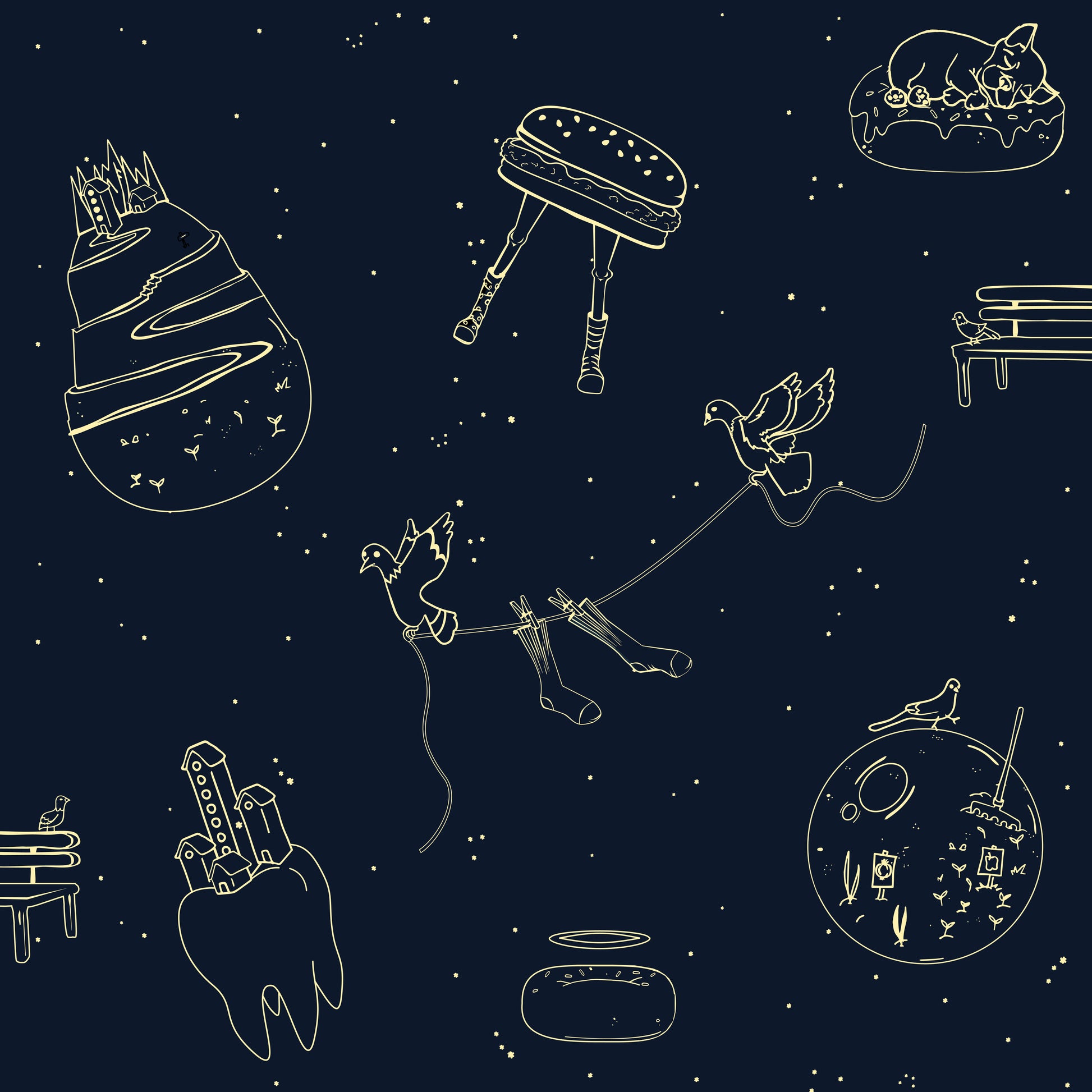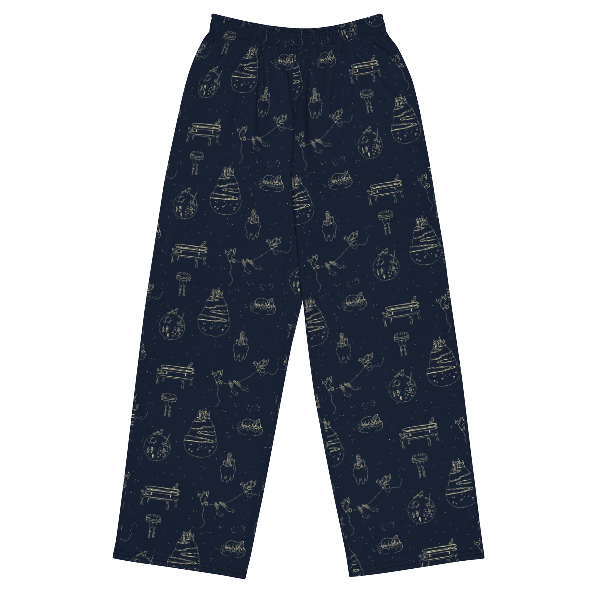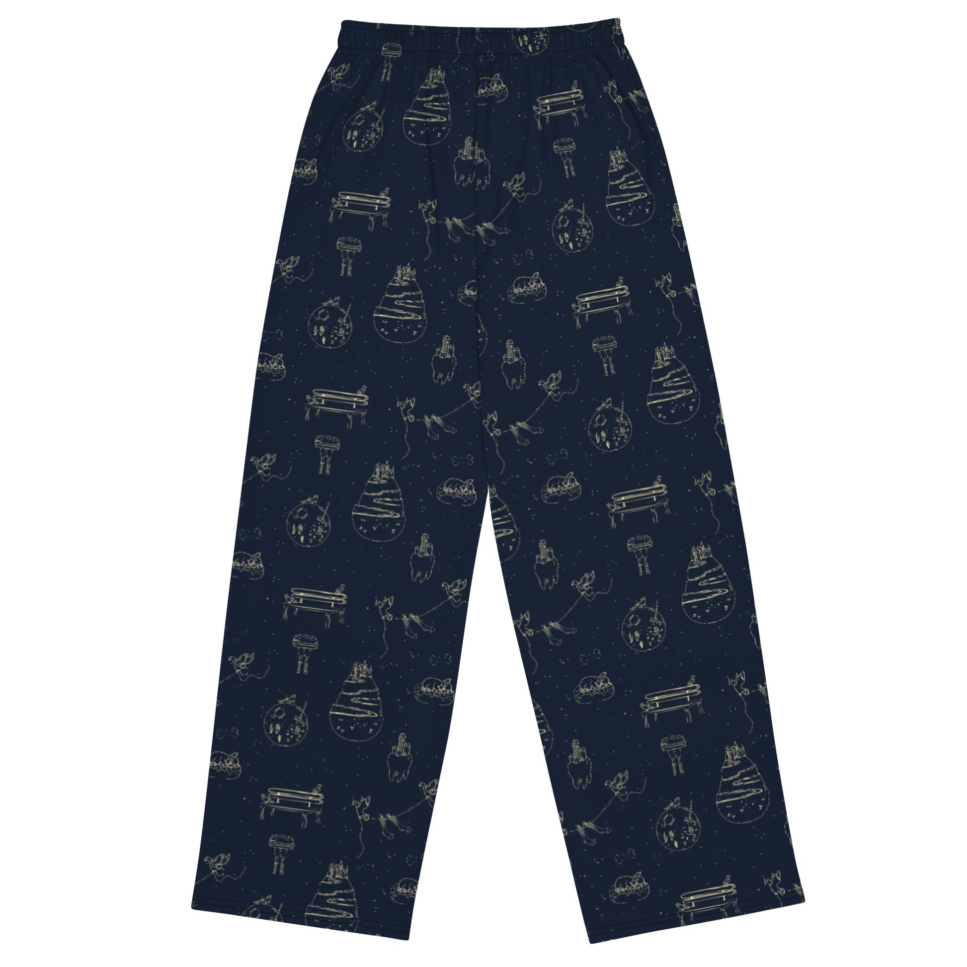 Cozy up in wide-leg jamjams with the dreamlike constellations of Ryan Rambles favorite topics from benches to hamburger walks. With an elastic waist and stretchy fabric, it’s like your favorite PJs but sleepier.