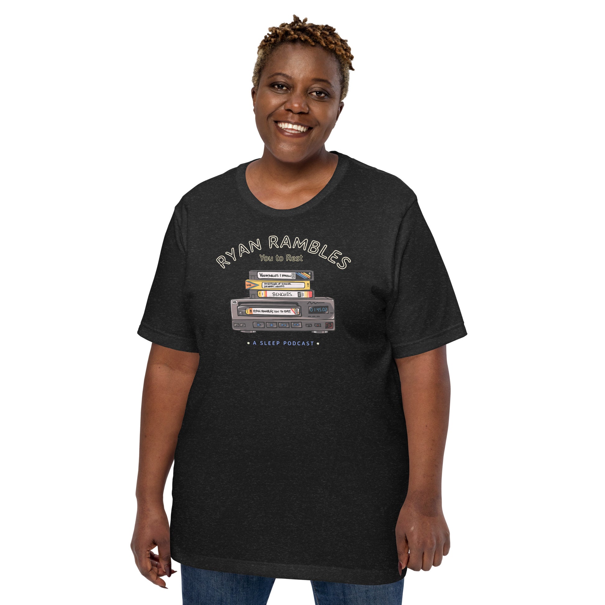 We won't tell you how to listen. VHS tapes with some classic Ramble titles. Remember the old tape days while driving off to sleep. It feels soft and lightweight, with the right amount of stretch. It's comfortable for a good night's rest.